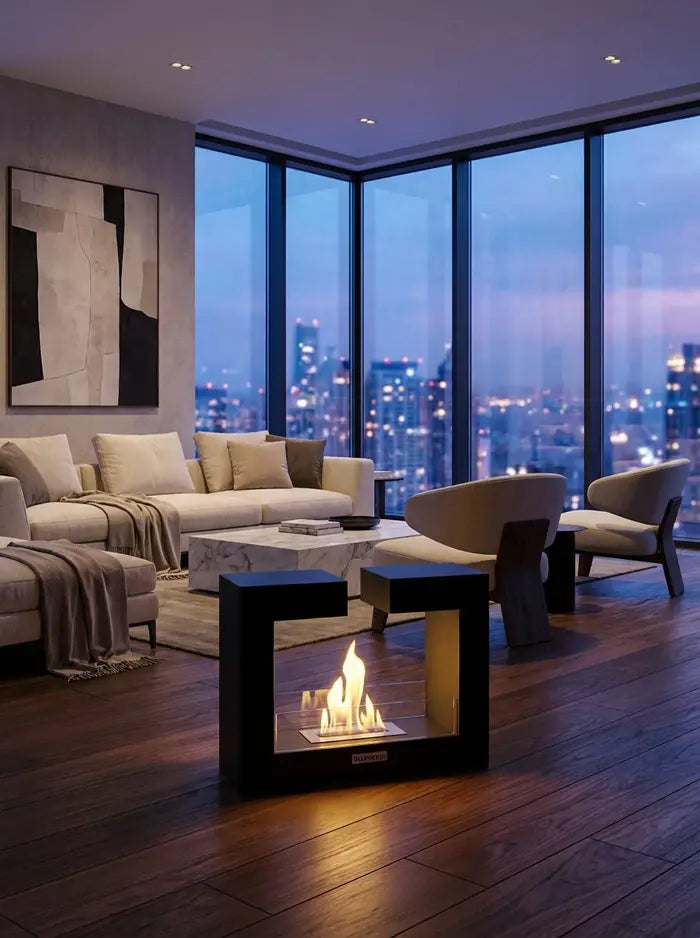 مدفأة FrameFire المحمولة - خطوط عصرية، لهب نقي، راحة متنقلة