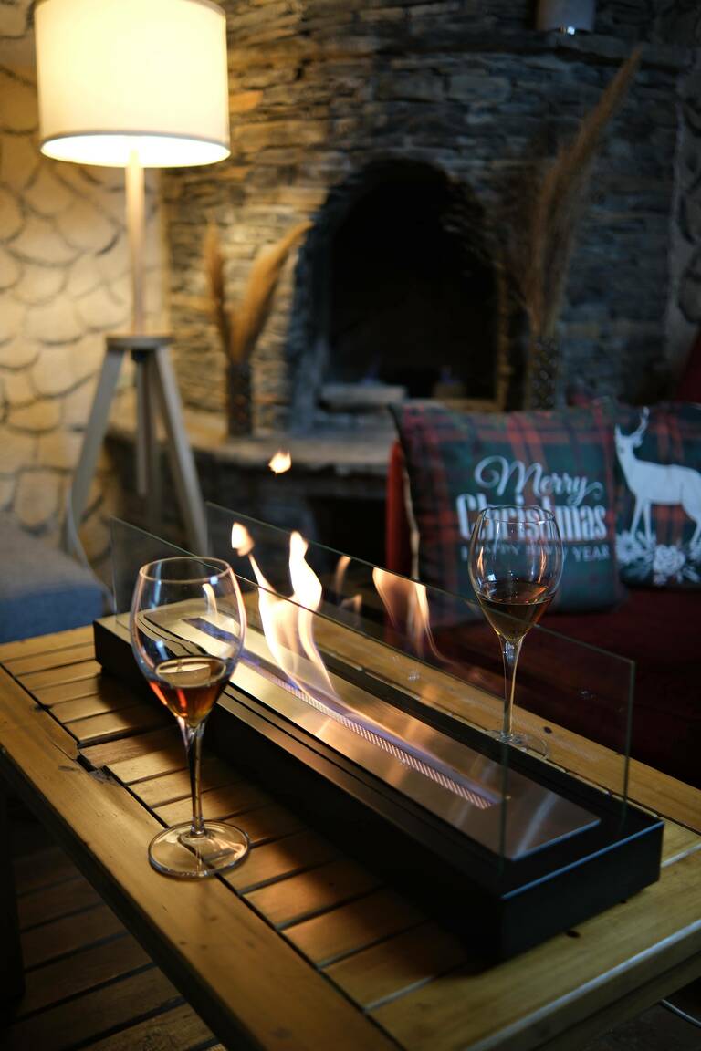محتوى المنتج: قاعدة معدنية، جداران من الزجاج المقوى، خزان وقود من الفولاذ المقاوم للصدأ، مطفأة حريق، وقود مدفأة سعة 1 لتر