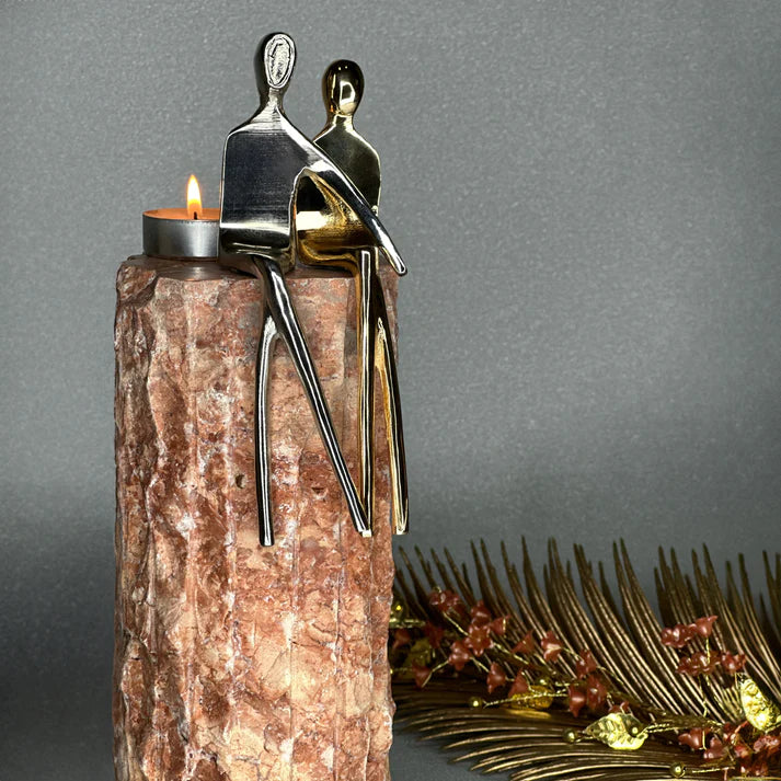 يجمع حامل الشموع المزخرف الكبير من Merleger بين الملمس النبيل للحجر الطبيعي مع التوهج الدافئ لتفاصيل النحاس، ويضيف جوًا فاخرًا إلى مساحات المعيشة الخاصة بك.